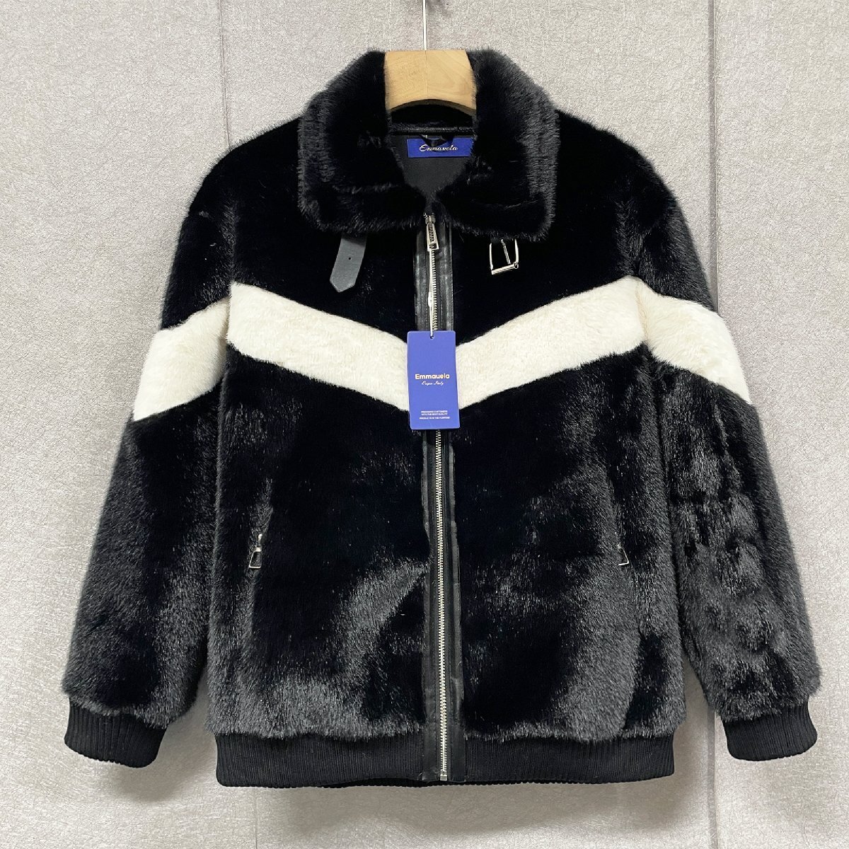 - 高級・ファーコート 定価10万◆Emmauela・イタリア・ミラノ発◆ミンク混 柔らか 防寒 切替 光沢感 毛皮コート ジャケット アウター 2XL/52
