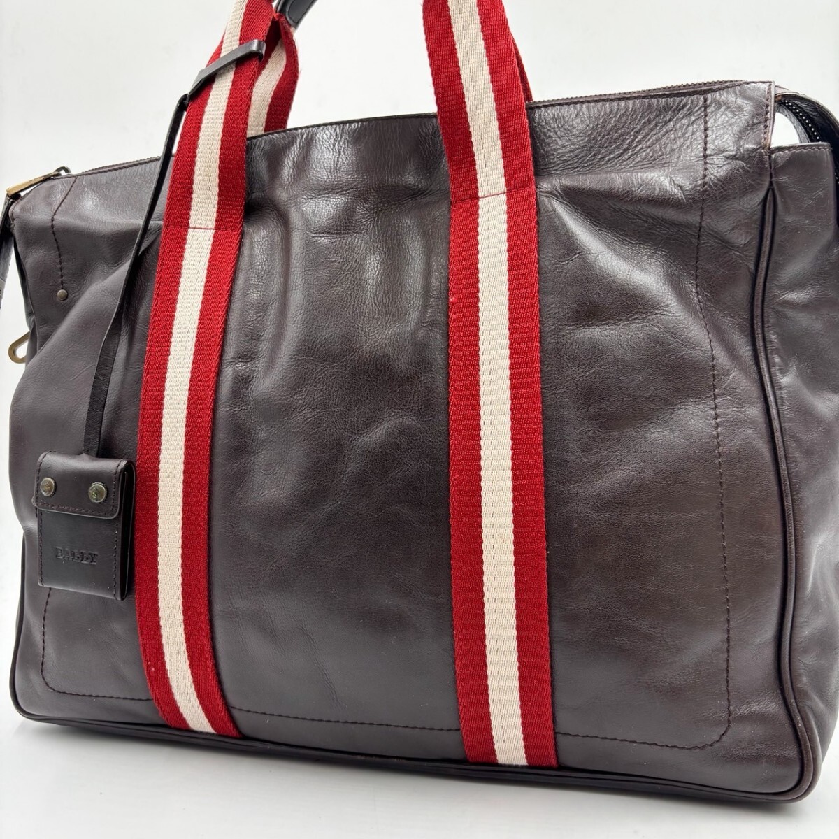 - 1円 【美品】バリー BALLY ビジネスバッグ トートバッグ ブリーフケース ブラウン 茶色 レザー 革 トレインスポッティング ストライプ