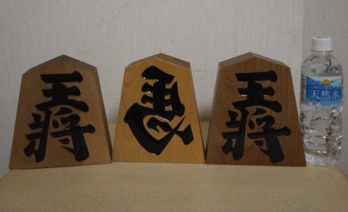 - 【飾り駒】王将 馬 3体セット 王作 天一作 天月作 銘あり 木製 置物 オブジェ