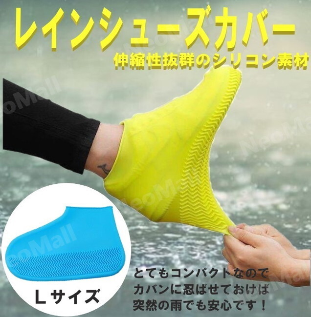 > 送料コミ ☆ 雨 から 靴を 守る! レディース メンズ シリコン レイン シューズカバー ブルー Lサイズ 自転車 バイク 通勤 通学 登山