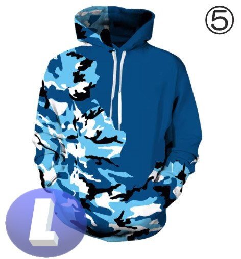 - フード付き 迷彩パーカー カモフラ ブルー L トレーナー アウター 防寒 n721