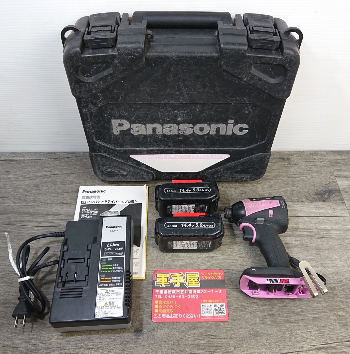 > 【 パナソニック / Panasonic 】 EZ75A7LJ2F-P 充電式インパクトドライバ 14.4V 充電器/バッテリー×2/ケース付 ※回転不安定