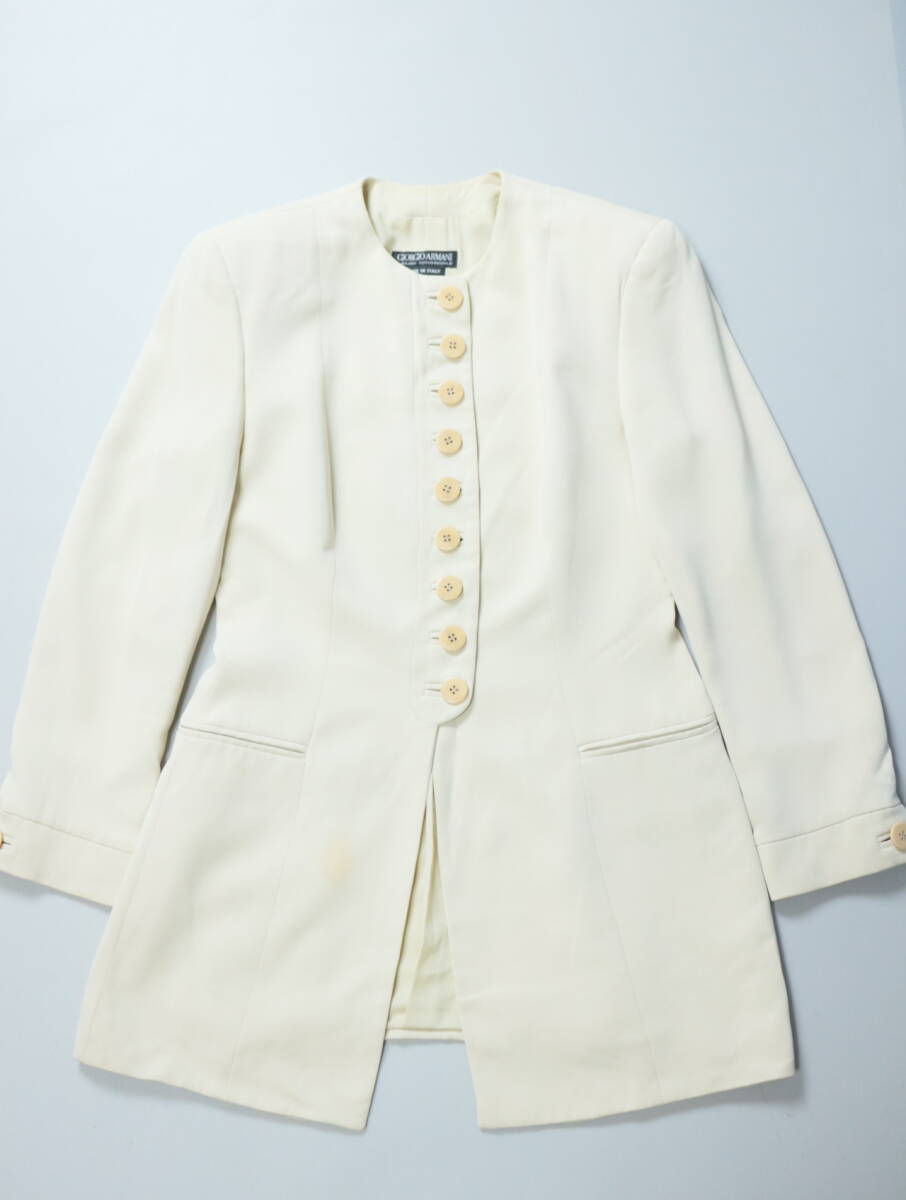 > C100/GIORGIO ARMANI/ジョルジオアルマーニ/90S/オールド/イタリア製/絹100/ノーカラージャケット/シルクジャケット/