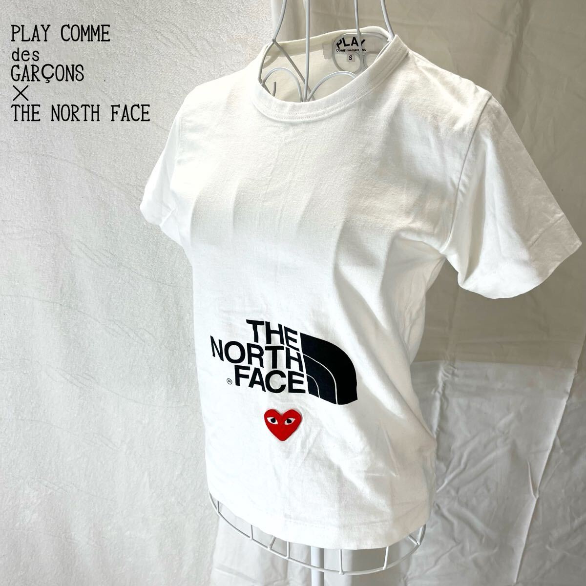 > PLAY COMME des GARCONS × THE NORTH FACE プレイ コムデギャルソン ノースフェイス Tシャツ 白 Sサイズ ハートロゴ コラボ 日本製