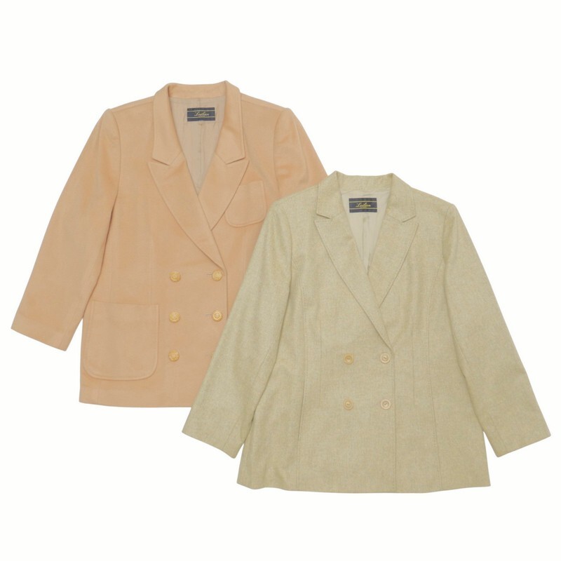 - MH4348□ ロロピアーナ生地 ジョンストンズ生地 レリアン/Leilian 2点セット 総カシミヤ ダブルブレスト テーラードジャケット レディース