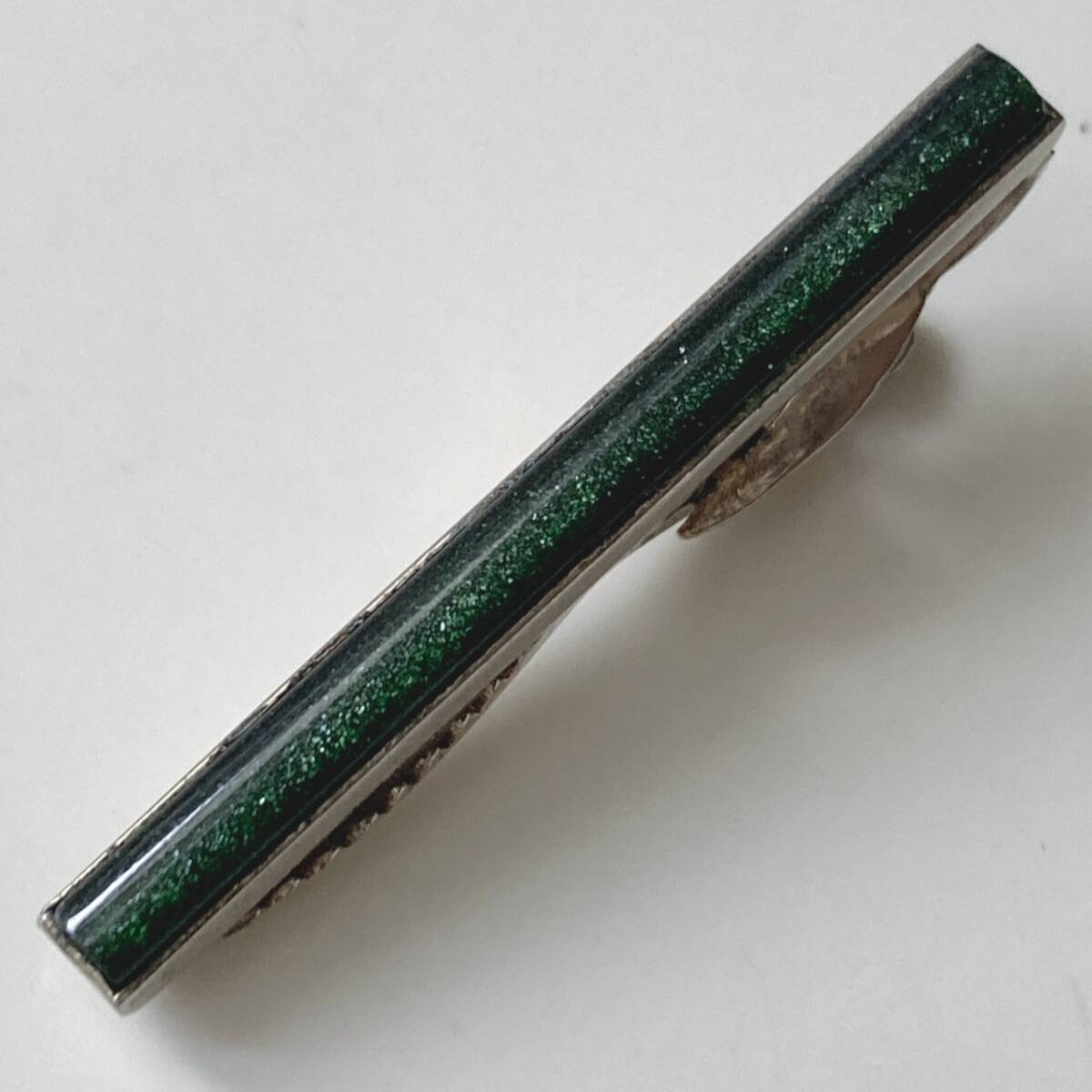 - ヴィンテージタイピン グリーン ラメ タイバー 三つ葉のクローバー ネクタイピン■Vintage jewelry accessoriesF0375