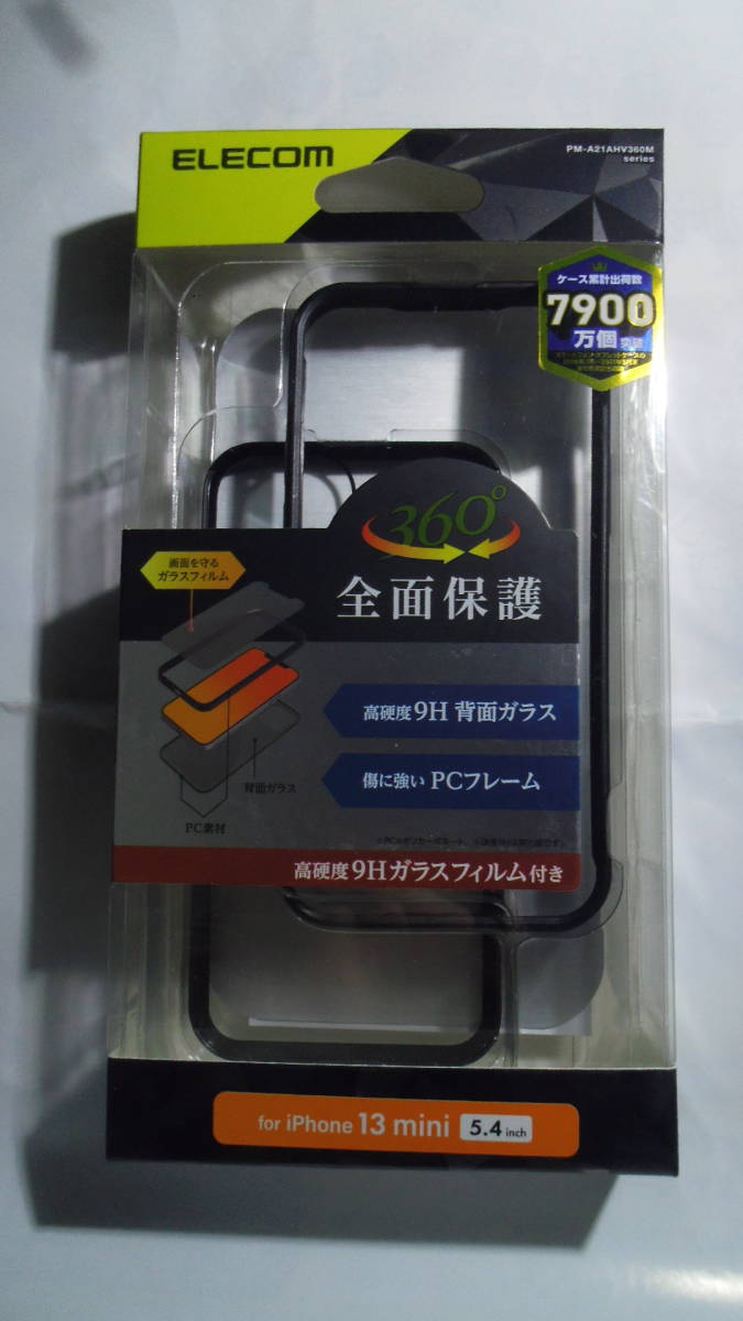 > ELECOM iPhone 13 mini ハイブリッドケース 360度保護 背面ガラス ブラック 前面背面強化ガラスと側面傷に強いポリカーボネート 定形外390~
