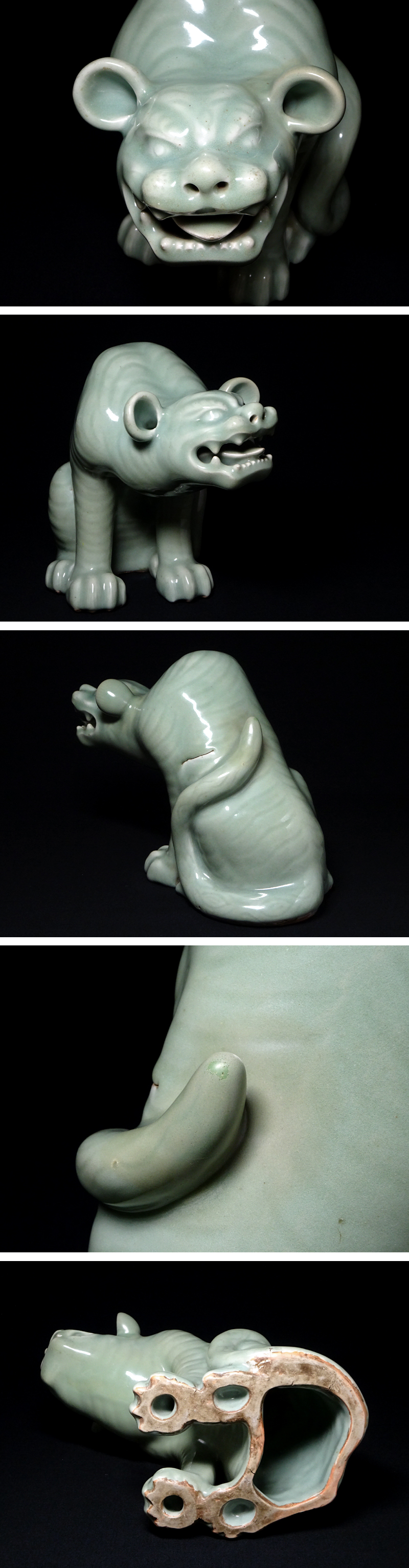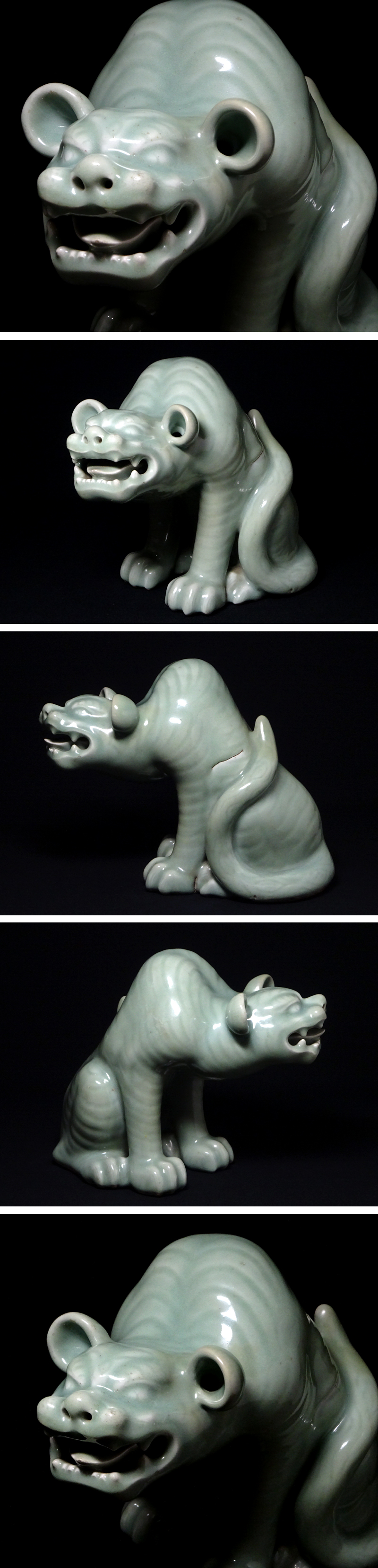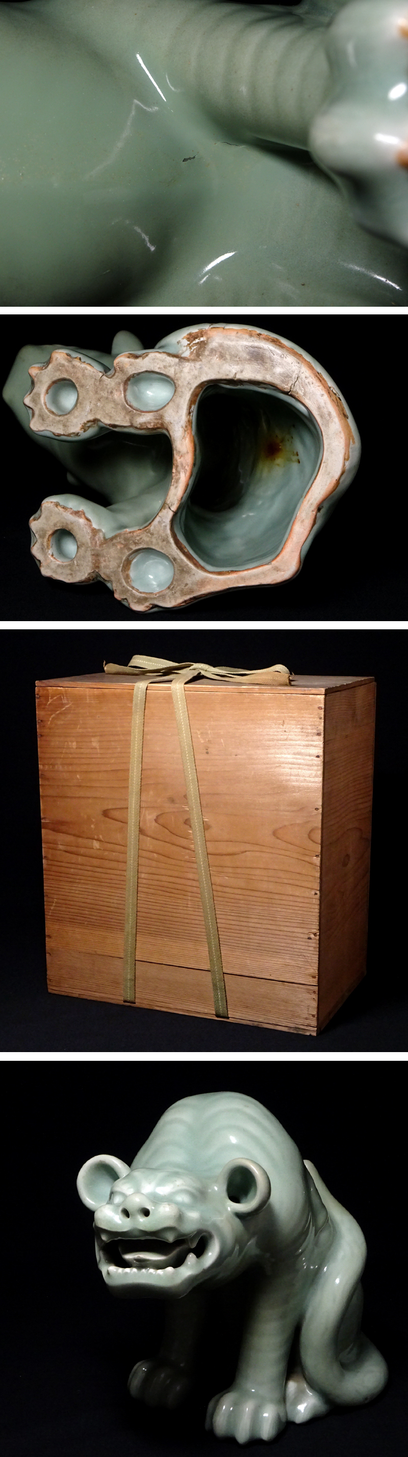 - 慶應◆江戸時代 鍋島藩窯 鍋島青磁 虎置物 献上手の大型造形作品 高さ23.5㎝ 時代箱付