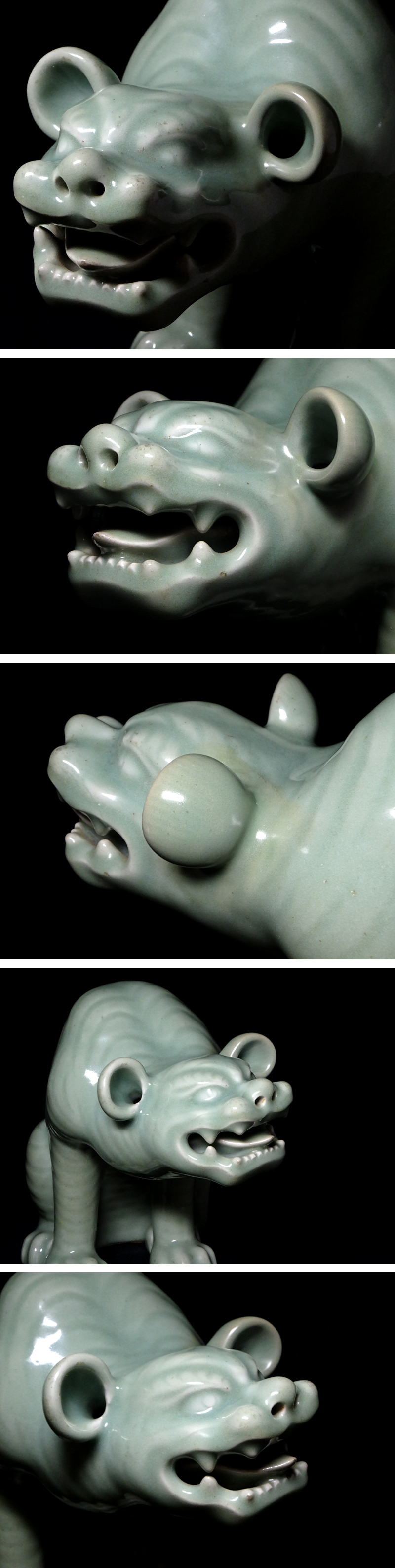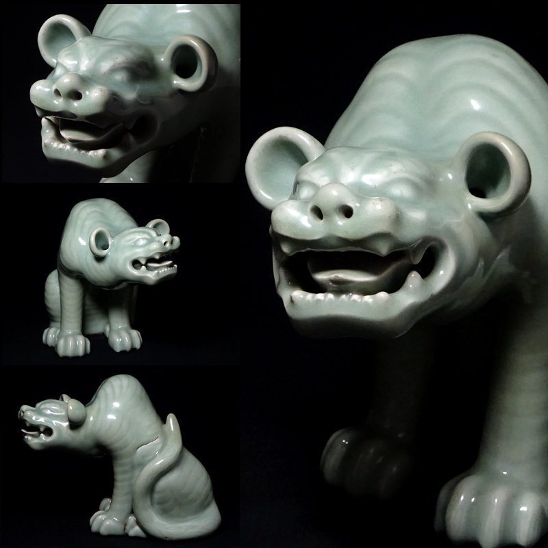 > 慶應◆江戸時代 鍋島藩窯 鍋島青磁 虎置物 献上手の大型造形作品 高さ23.5㎝ 時代箱付
