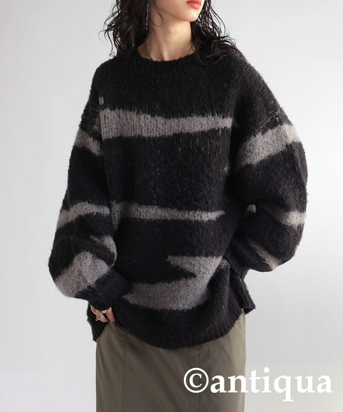 - 「antiqua」 「tree cafe」長袖ニット FREE ブラック×グレー レディース