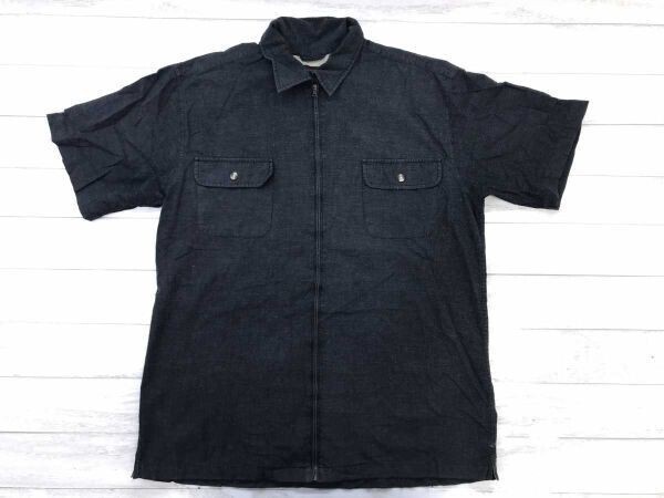 > エクセゾン EXSEZON + レトロ アーバンストリート ワーク ジップアップ 半袖シャツ メンズ コットン100% L 紺