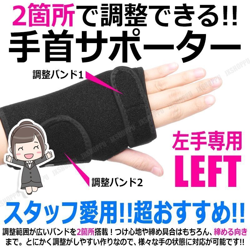 - 送料無料! スタッフも愛用! 手首サポーター 固定強化タイプ ダブルベルト 金属製 着脱式プレート付 [左手専用] 伸縮性素材 スポーツ 保護