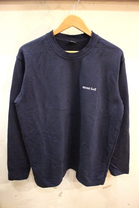 > J51*mont-bell モンベル size M コットン ライトスウェット 2104780 長袖 クルーネック 刺繍ロゴ 裏パイル トレーナー ネイビー メンズ