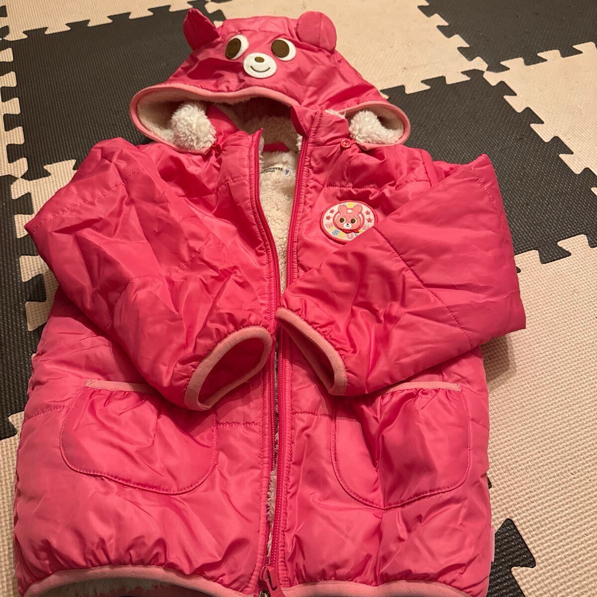 - ミキハウスホットビスケッツ コート ピンク アウターサイズ110 フード取り外し可 女の子