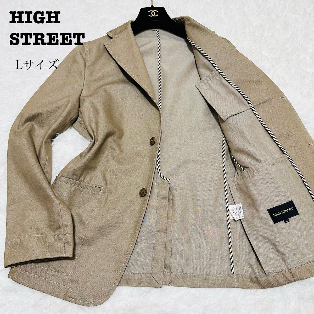 - 【美品】 HIGH STREET ハイストリート テーラードジャケット ベージュ コットン ポリエステル メンズ Lサイズ 紳士 ポリエステル