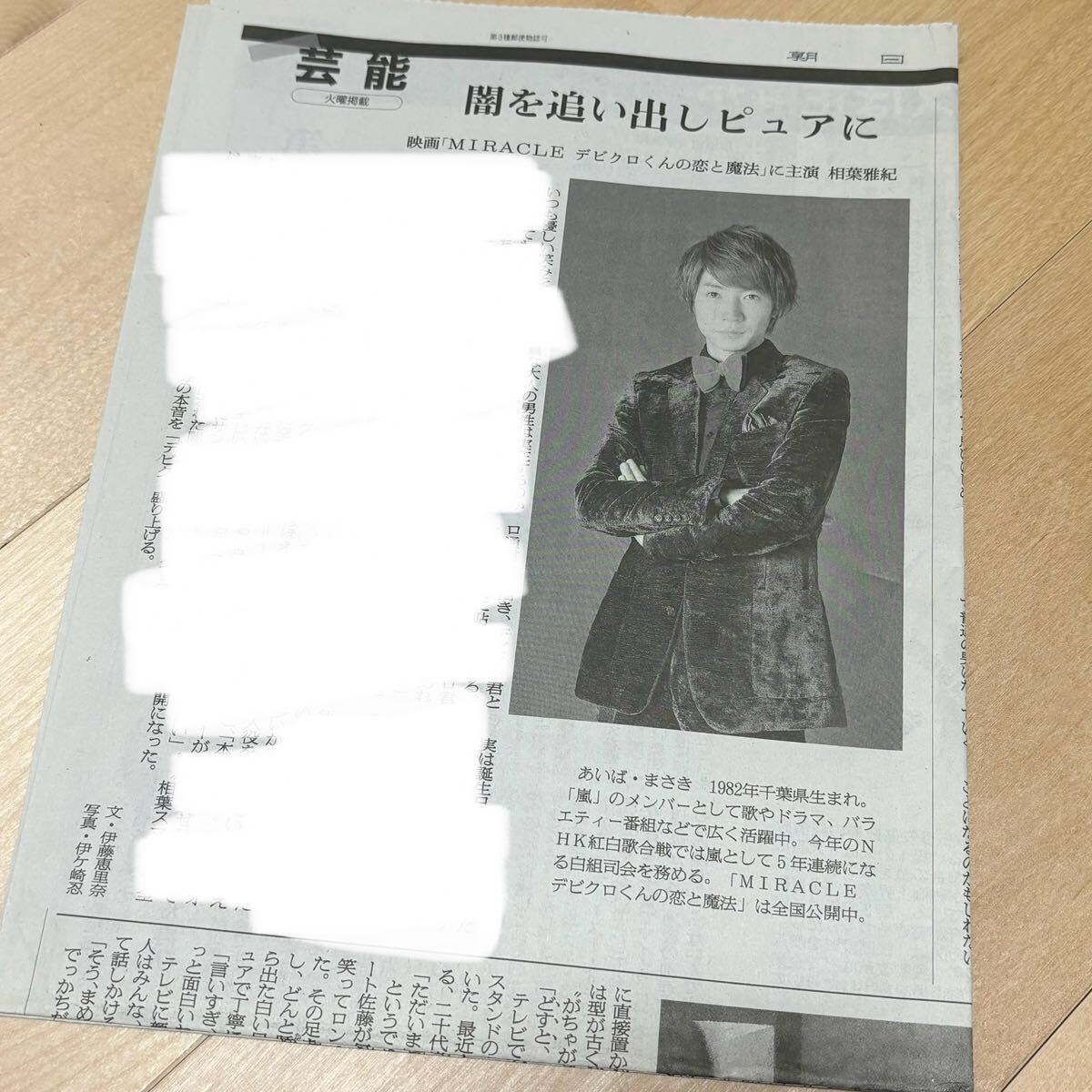 - 嵐グッズ 相葉雅紀 2014/12 朝日新聞 インタビュー記事 映画 MIRACLE デビクロくんの恋と魔法 切り抜き 当時物 平成ノスタルジー