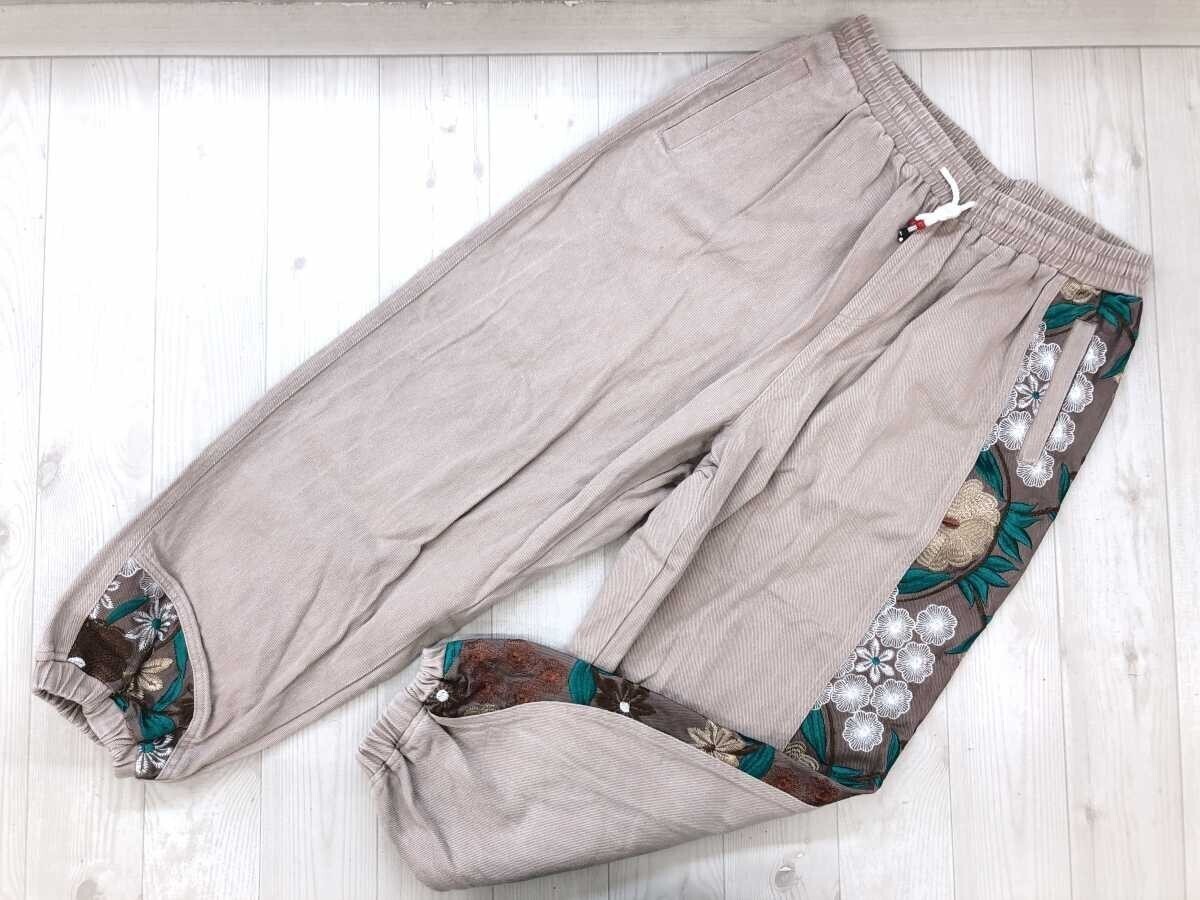 > 民族エスニック オリエンタル ボタニカル 花柄切替 アンクル丈 イージー スウェット ジョガー パンツ レディース 5XL ベージュ