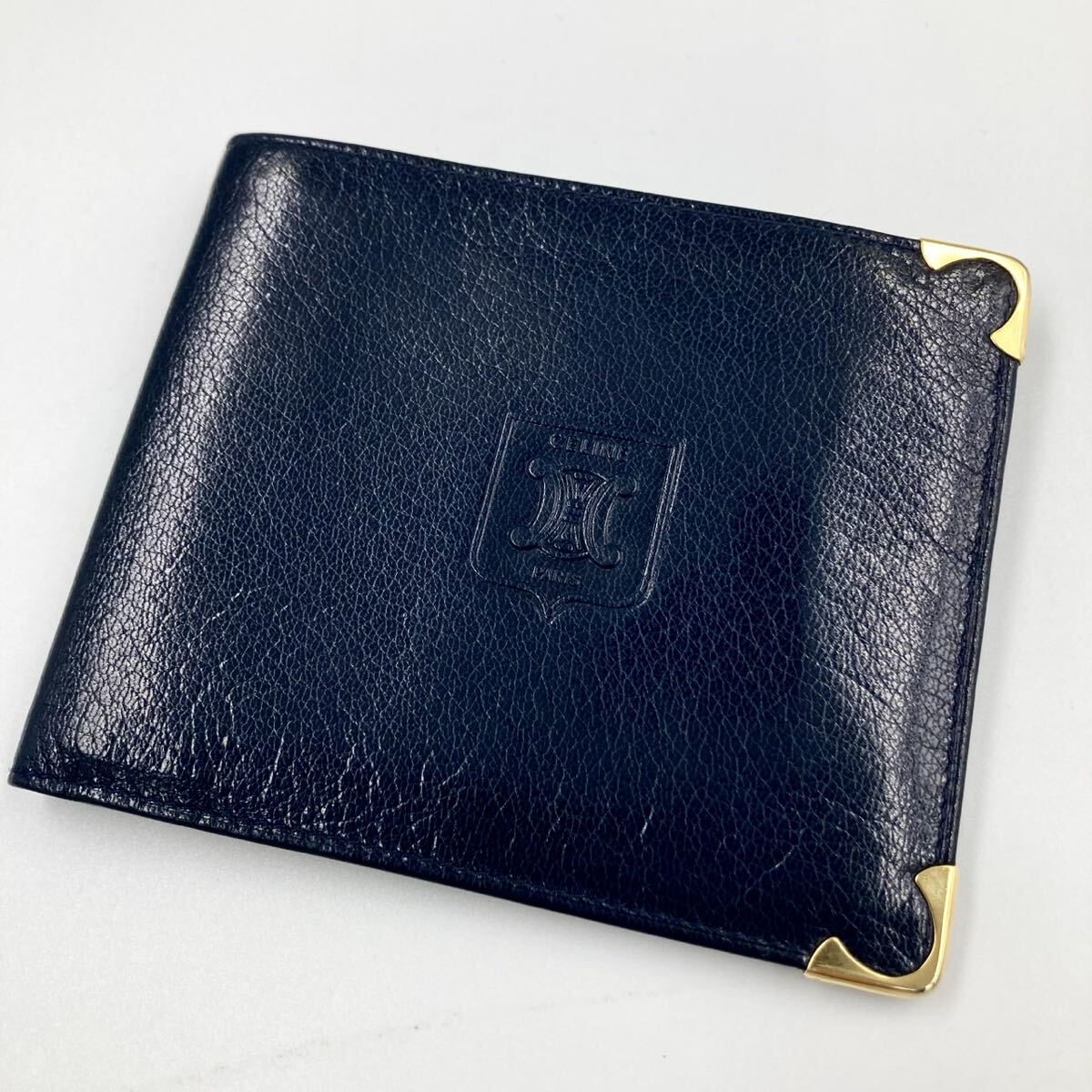 - 1円■美品■ヴィンテージ セリーヌ 二つ折り財布 レザー ネイビー トリオンフ CELINE