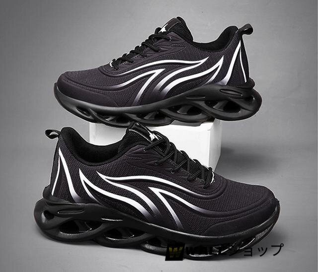 - スニーカー メンズ スポーツ 靴 ウォーキング ランニングシューズ ジョギング トレーニング カジュアルシューズ ブラック 26.5cm