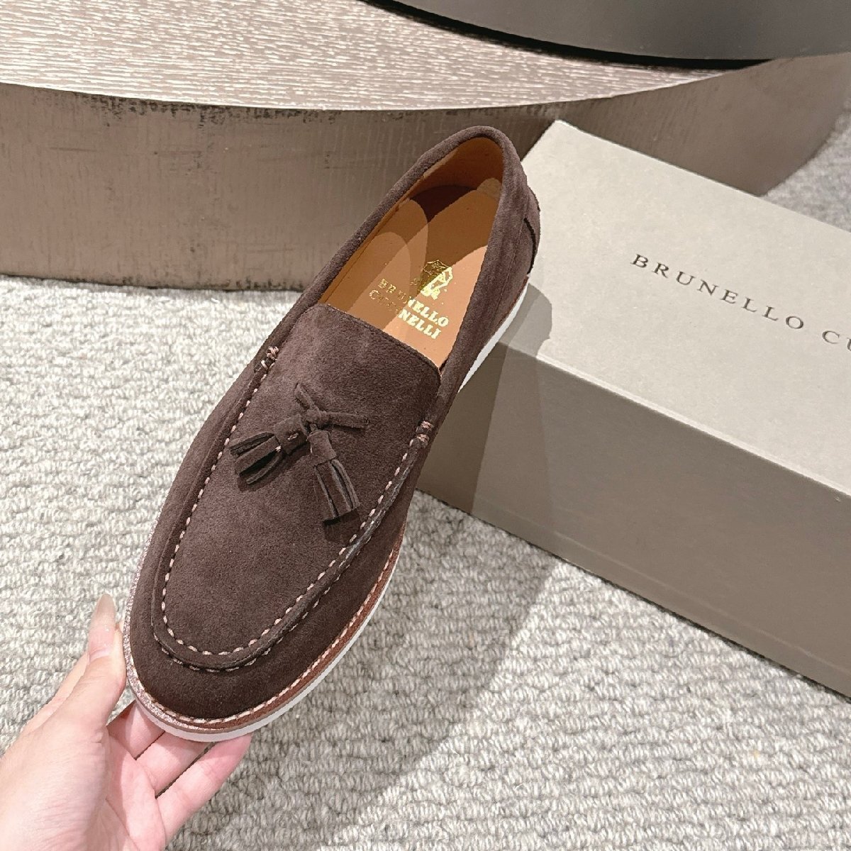> ダークブラウン26.5cm ★送料無料★ブルネロクチネリ★メンズススエード タッセル ローファー, 本革, カジュアル シューズ, ホワイトソール