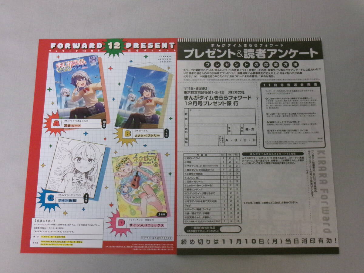 - まんがタイムきららフォワード12月号 アンケート応募用紙