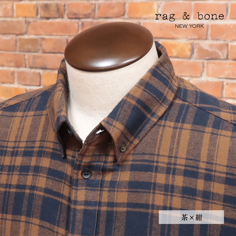 - 1円/秋冬/rag&bone/Lサイズ/ネルシャツ MBW22FA334YFML チェック柄 ボタンダウン 長袖 ラグ&ボーン 新品/茶×紺/mb285/