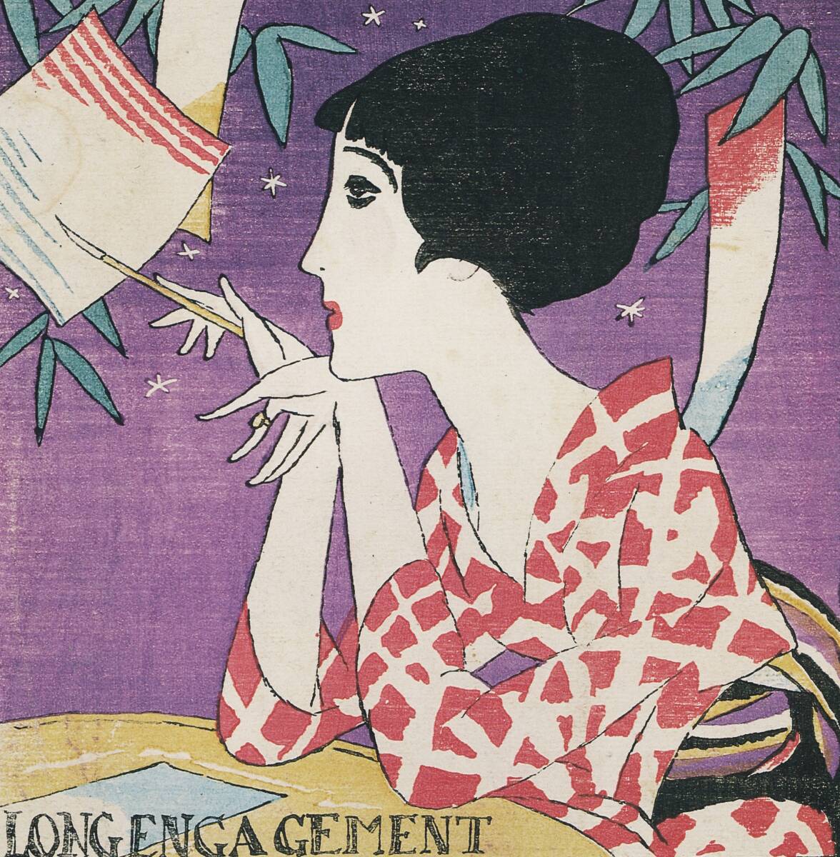 - 新品 竹久夢二「LONG ENGAGEMENT」の特殊技法高級印刷 A4版サイズ 額なし 特価980円(送料込)即決
