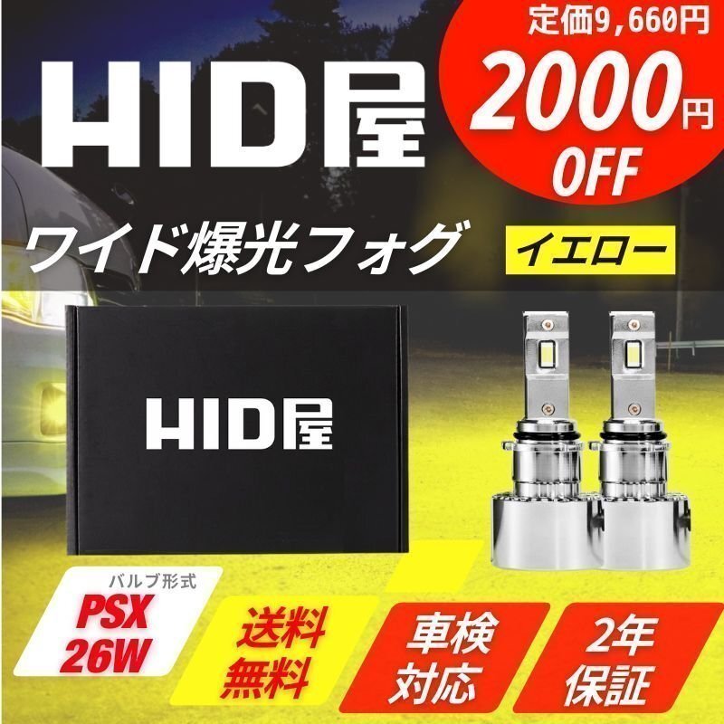 - 【2000円OFF】限定セール【送料無料】HID屋 LED 爆光 フォグランプ イエロー バルブ PSX26W 車検対応 安心保証 様々な車種に