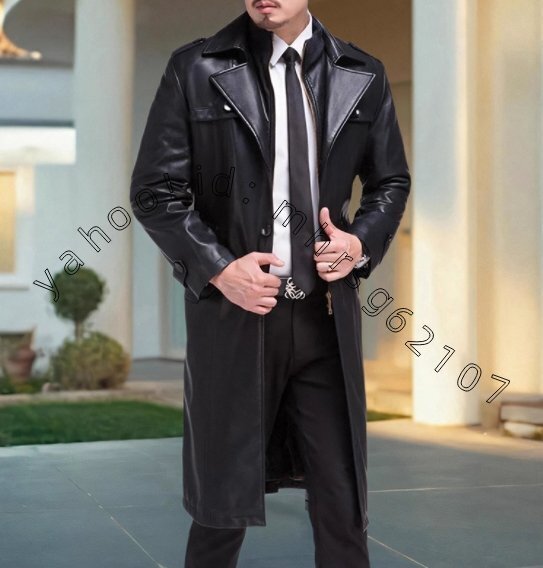 - 本革 レザーコート 裏起毛 高品質 上品 メンズ ロングコートS~5XLサイズ選択可能