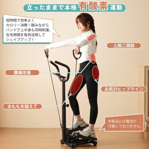 - 【国内発送】ステッパー バンド付き ハンドル付き 上下運動とひねり運動 静音 室内 強度調節 有酸素運動 足踏みステッパー 油圧駆動 LCDデ