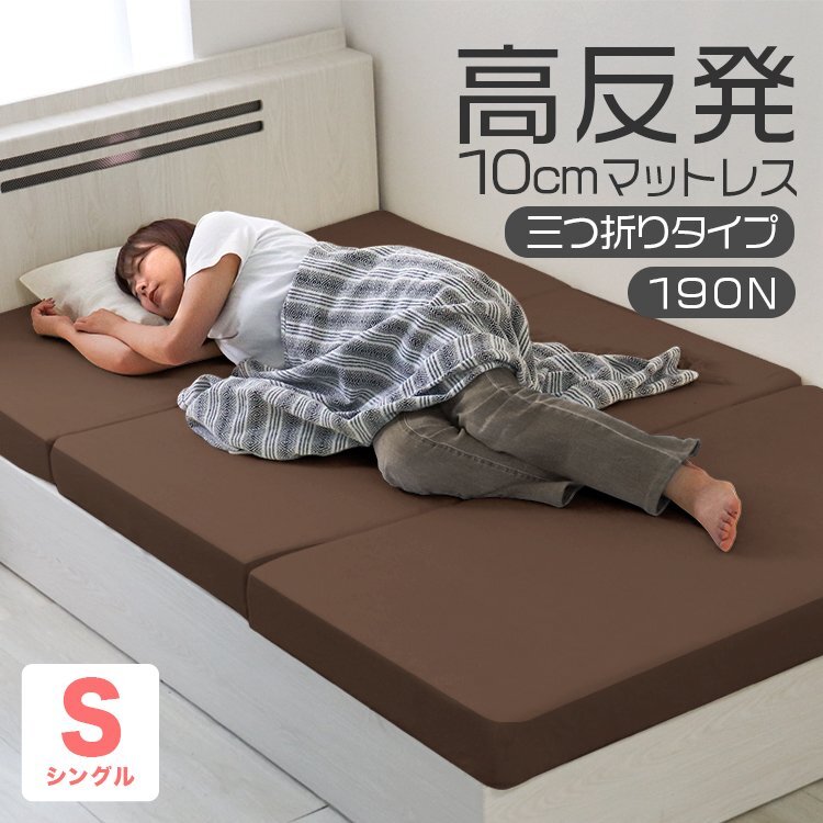 - 【シングル ブラウン】三つ折りマットレス 高反発 190N 極厚10cm 高反発マットレス パイル生地 ベッドマットレス ベッドマット 敷布団