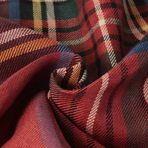 > ♪麻先染ロイヤルスチュワートチェック 赤チェック 巾:150cm♪5m[5564]15