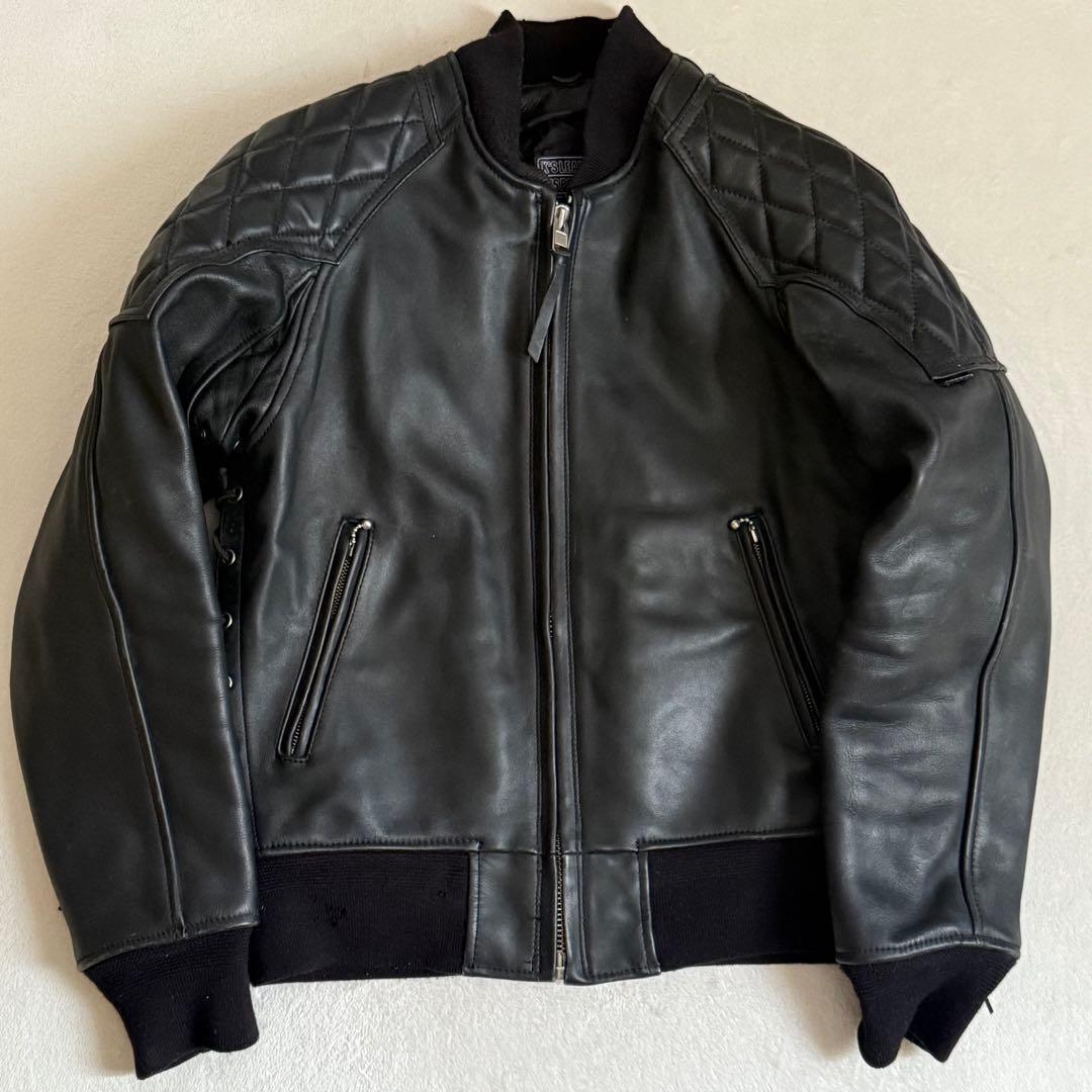 - カドヤ レザージャケット ブラック パテッド キルティング LL