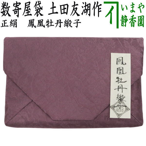 - 茶道具 数奇屋袋 数寄屋袋 正絹 鳳凰牡丹緞子 爪:木製 土田友湖作 千家十職 袋師 茶道