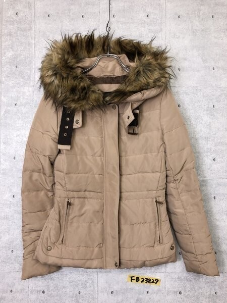 > ZARA BASIC ザラ レディース フード エコファー付き 比翼ジップ 中綿 ジャケット 小さいサイズ XS ベージュ