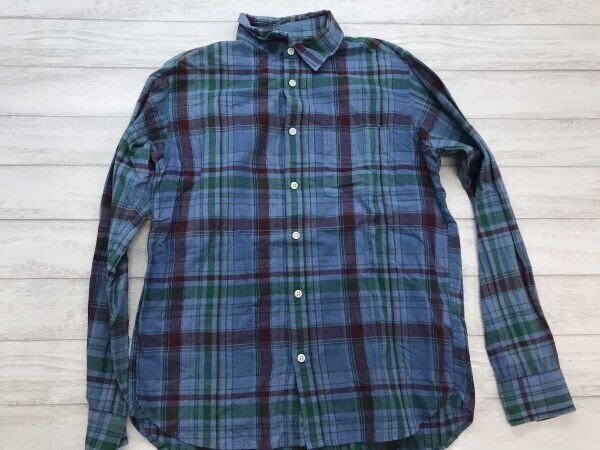 > URBAN RESEARCH DOORS アーバンリサーチ ドアーズ メンズ アメカジ ワーク チェック 小衿 小襟 長袖シャツ 綿100% 38 青系