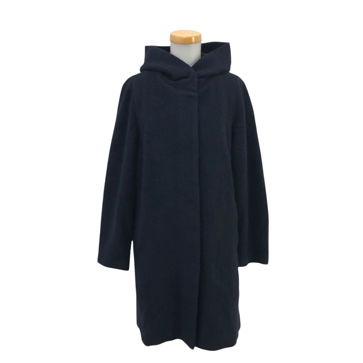 - 11Nm335-20 EVEX by KRIZIA エヴェックス バイ クリツィア フード フーディ コート 上着 羽織り アウター ネイビー 紺 レディース 40