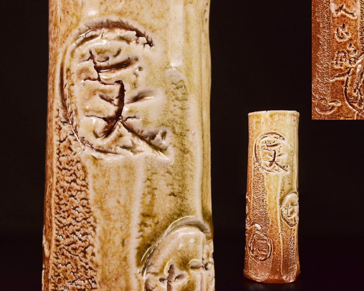 Z436 【泉美】清水公照 花入 花瓶 花生 花器拍卖