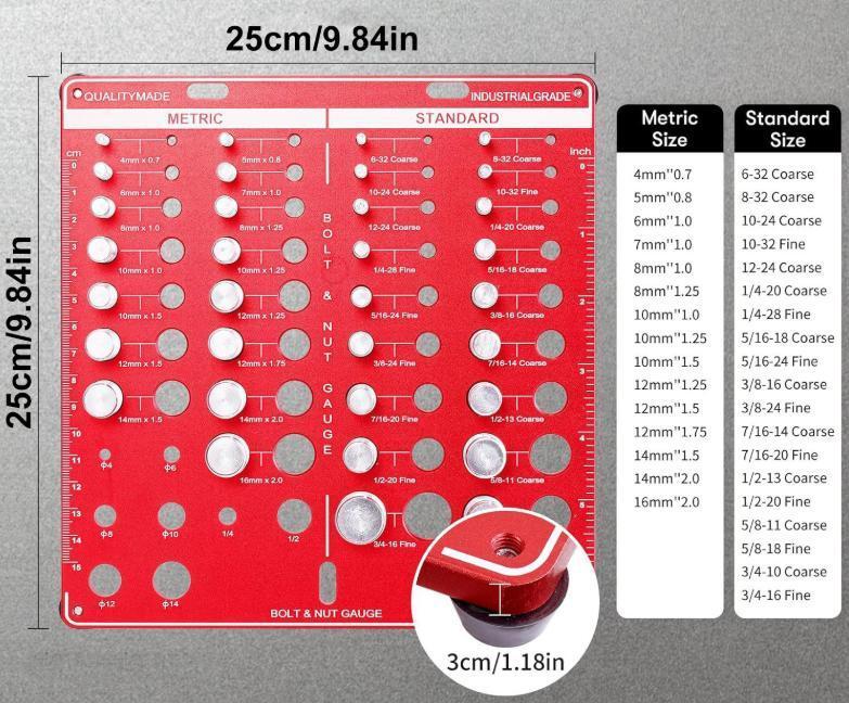 - ねじチェッカー ボルト ナット ゲージ 28種 ミリ インチ UNC UNF ピッチ測定 定規付 スレッドチェッカー 金属製 工具 DIY 管理X4