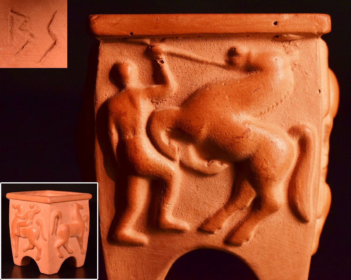 古代ギリシャ風の馬に乗った人物が描かれたレリーフが魅力的なお品です。