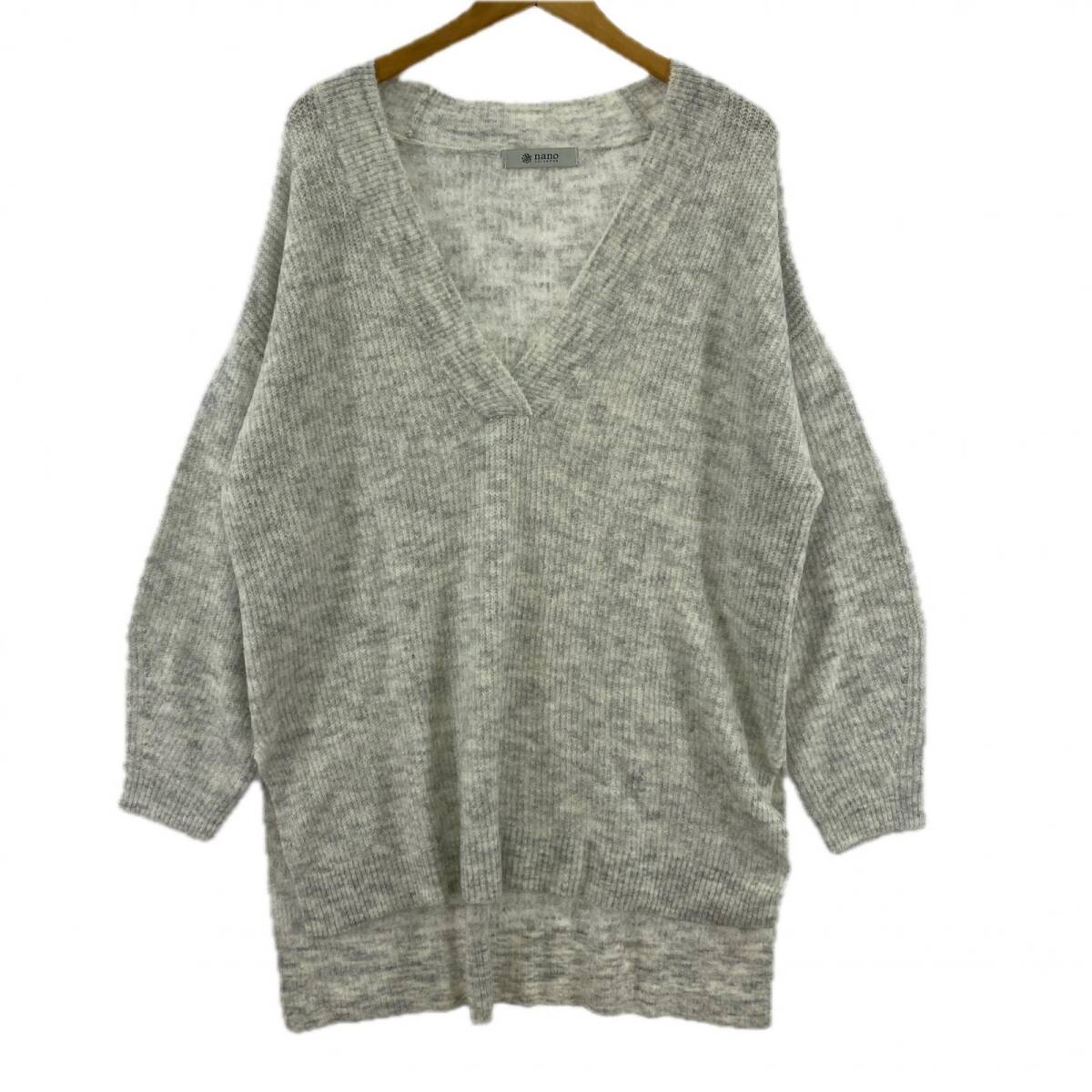 - nano universe ナノ ユニバース Vネック サイドスリット ニット sizeF/ライトグレー