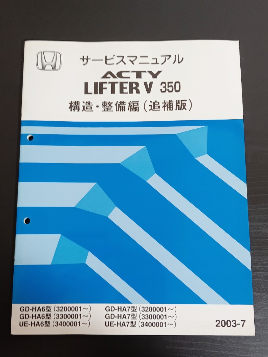 - A9 ホンダ ACTY LIFTER V 350 サービスマニュアル 構造・整備編(追補版) 2003年7月