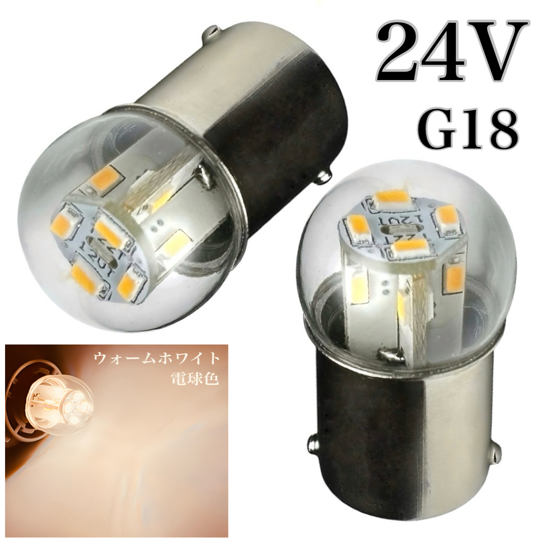 - 電球形状 24V LED G18 シングル球 2個セット BA15s 電球色 ウォームホワイト ピン角180 送料無料