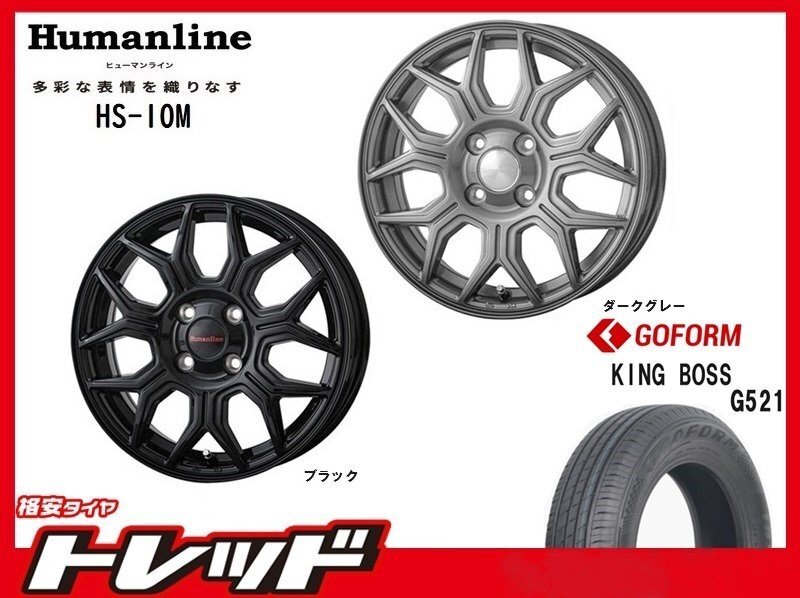 > (数量限定 2023~24年製)新横浜師岡店 新品サマータイヤアルミ4本set ヒューマンライン HS-10M 14インチ5.5J4穴100+43 G521 165/65R14
