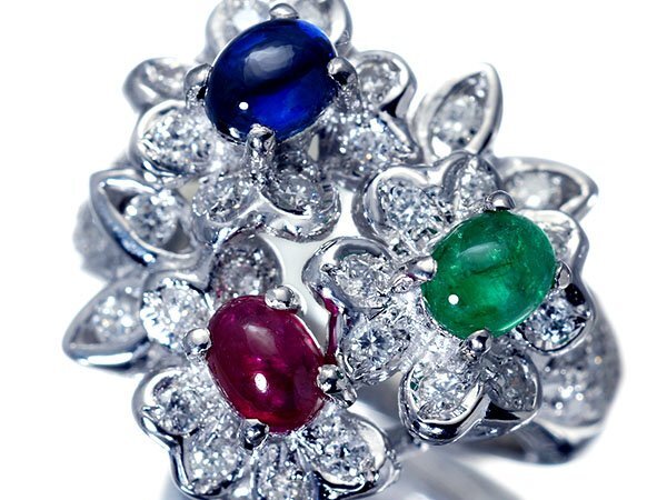 - 1円~【ジュエリー極】3色ギラギラフラワー!天然ブルーサファイア&ルビー&エメラルド&ダイヤ 超高級Pt900リング a2804ilil【送料無料】