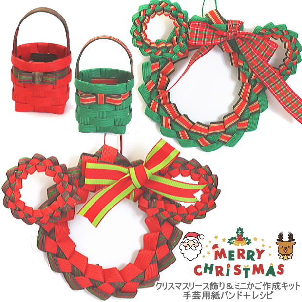 - クリスマスリース飾り手作りキット 簡単 かわいいミッキー型リース クラフトバンド 手芸用紙バンド 作り方説明書と材料 クラフトバンド