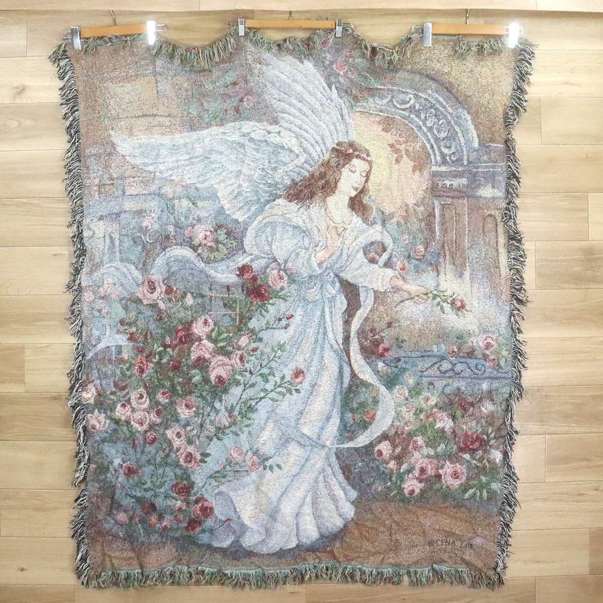 - M11-2 I/D10.23-6 LENA LIU 天使 エンジェル 守護天使 薔薇柄 ラグ マット カーペット ブランケット タペストリー インテリア
