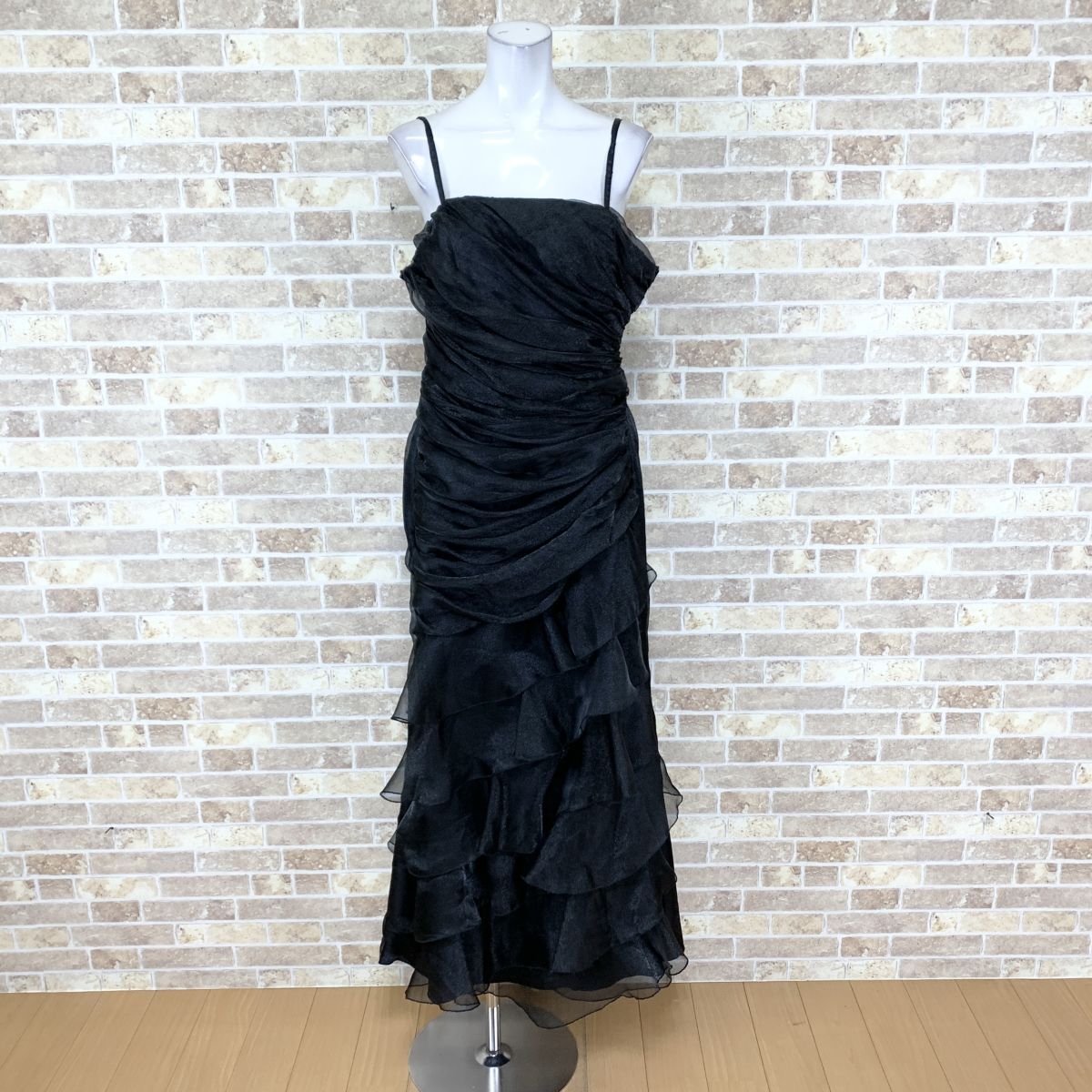 - 1円 ドレス ICHIOKU ロングドレス 黒系光沢 大きめサイズ パーティードレス カラードレス キャバドレ 中古15981