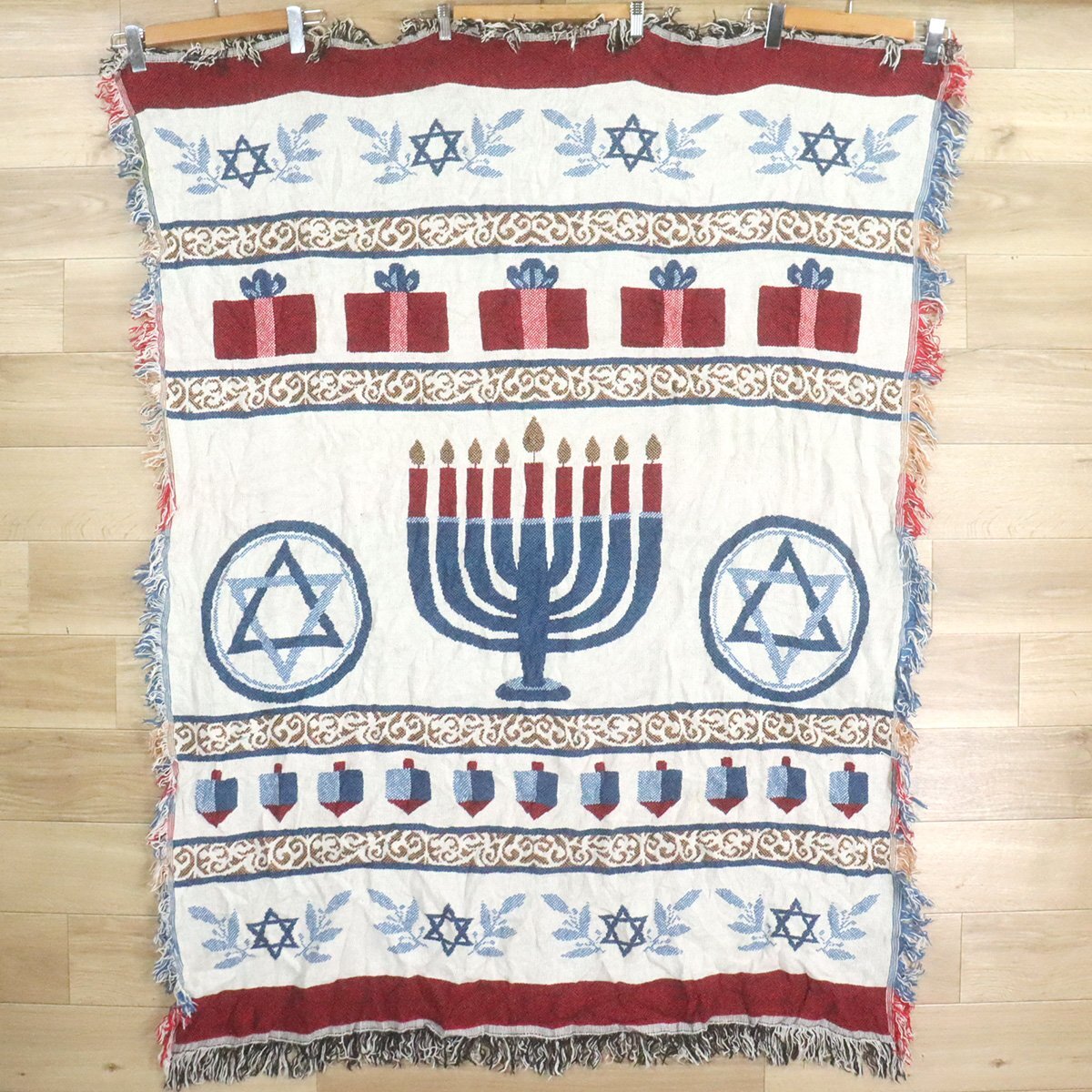 - N9-4 I/D10.23-7 ユダヤ教 ハヌカ 光の祭り メノラー ダビデの星 星柄 ラグ マット カーペット ブランケット タペストリー