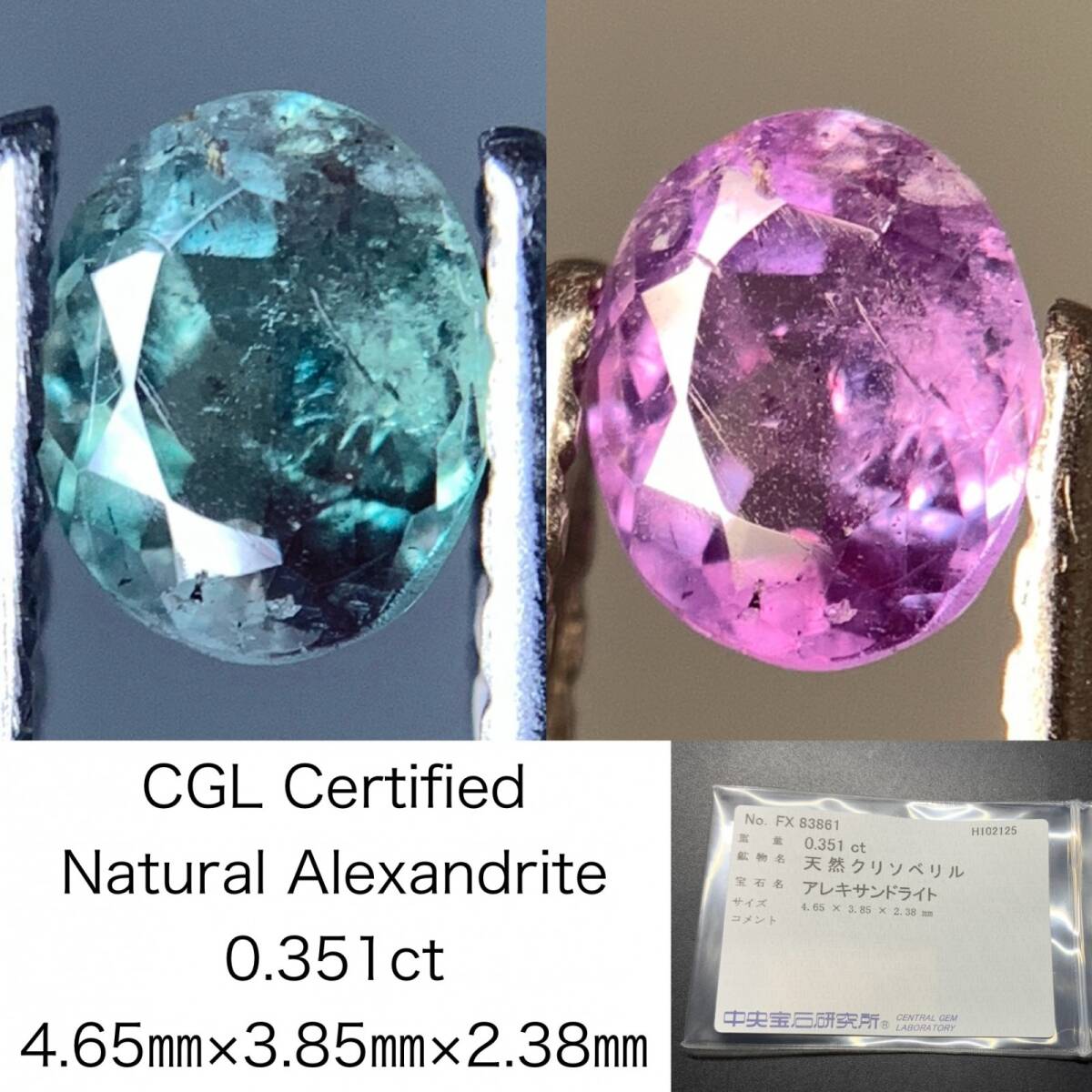 - アレキサンドライト 天然 0.351ct 中央宝石ソーティング付き 4.65×3.85×2.38 ルース( 裸石 ) 7105Y